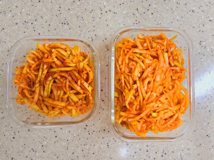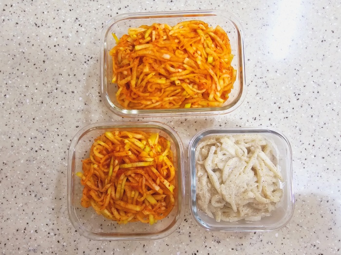 무생채를 담아주면 일주일 먹기 충분한 양이 되더라고요.