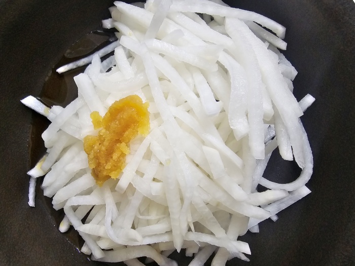 이제 무가 살짝 익을 정도로 볶아주기만 하면 돼요.